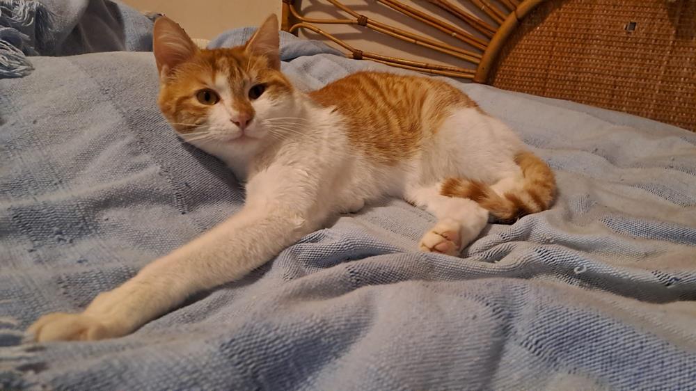 Mit anderen Katzen verträgt er sich gut, ist ein agiles verspieltes kleines Kerlchen.