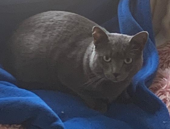 Grey ist inzwischen bei seiner Pflegemama ein verschmuster Kater, der sich gerne kraulen lässt und zu ihr auf den Schoß kommt.