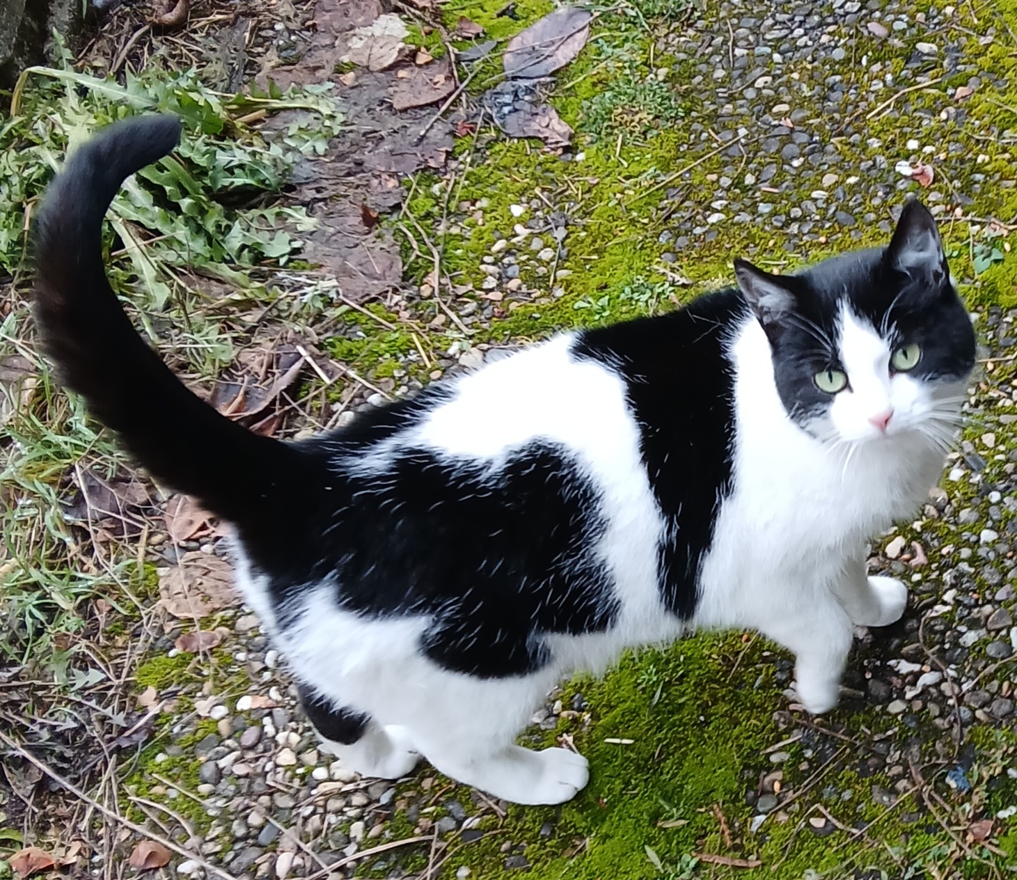 Miezi lebt zusammen mit ihren Geschwistern auf einem Privatgrundstück am Waldrand. Die Katzen dürfen nicht ins Haus, sie werden draußen gefüttert und gestreichelt.