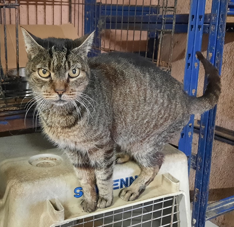 Er lebt im Tierheim mit vielen weiteren Katzen zusammen und hat damit rein gar kein Problem.