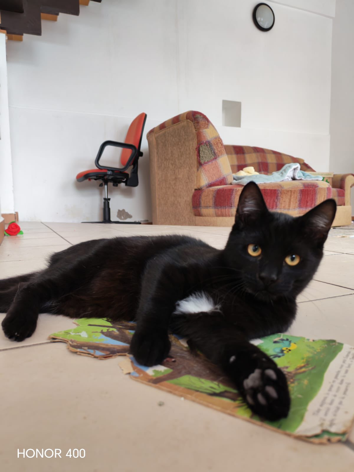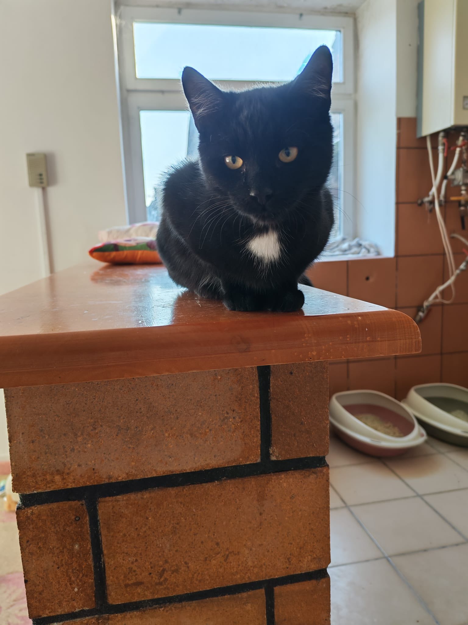 Er ist der Intellektuelle. Er spricht ein wenig, schnurrt und schmiegt sich an den Menschen. Gegenüber seinen Geschwistern ist er beim Fressen aber dominant und verteidigt das Futter.