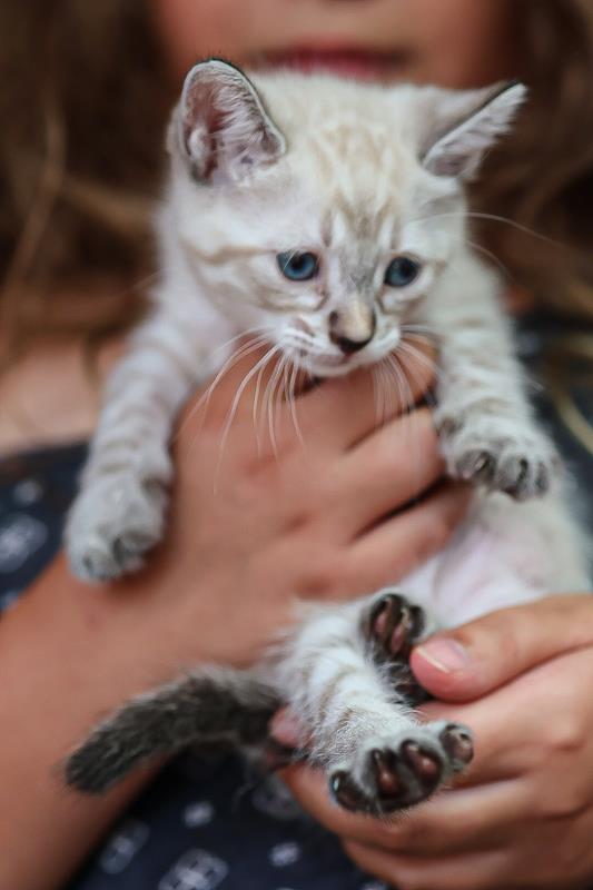 Hunde und Kinder haben die Kätzchen bisher noch nicht kennen gelernt. Daher sollten Kinder eher schon etwas größer und einfühlsam sein.
