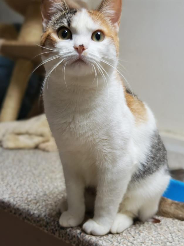 Ich bin eine süße und hübsche Katze. Auf meiner Nase habe ich einen kleinen Schönheitsfleck, der mir einen besonderen Charme verleiht. Ich bin unkompliziert, sehr liebevoll, anhänglich und reibe mich an den Beinen aller Menschen, um gestreichelt zu werden. Ich spiele gerne mit anderen Katzen und liebe sie, ich kuschele gerne mit ihnen, ich liebe ihre Gesellschaft. Ich kenne auch Hunde, hier in der Tierarztpraxis, wo ich vorübergehend wohne, habe ich viele kennengelernt.