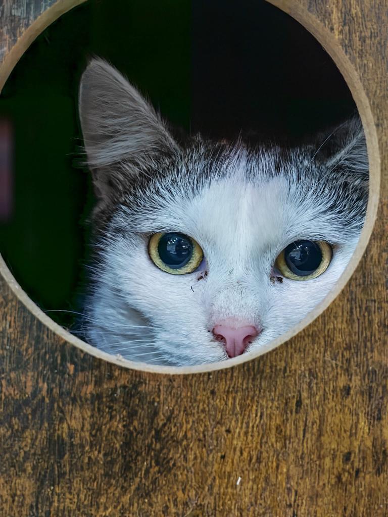 Als ich ca. 6 Monate alt war, wurde ich auf die Straße gefunden. Ich war abgemagert und krank . Ich wurde in einer Tierarztpraxis abgegeben und da gelassen, keiner wollte mich. Ich bin jetzt gesund und lebe hier mit viele andere gerettete Katzen und bin sehr sozial.