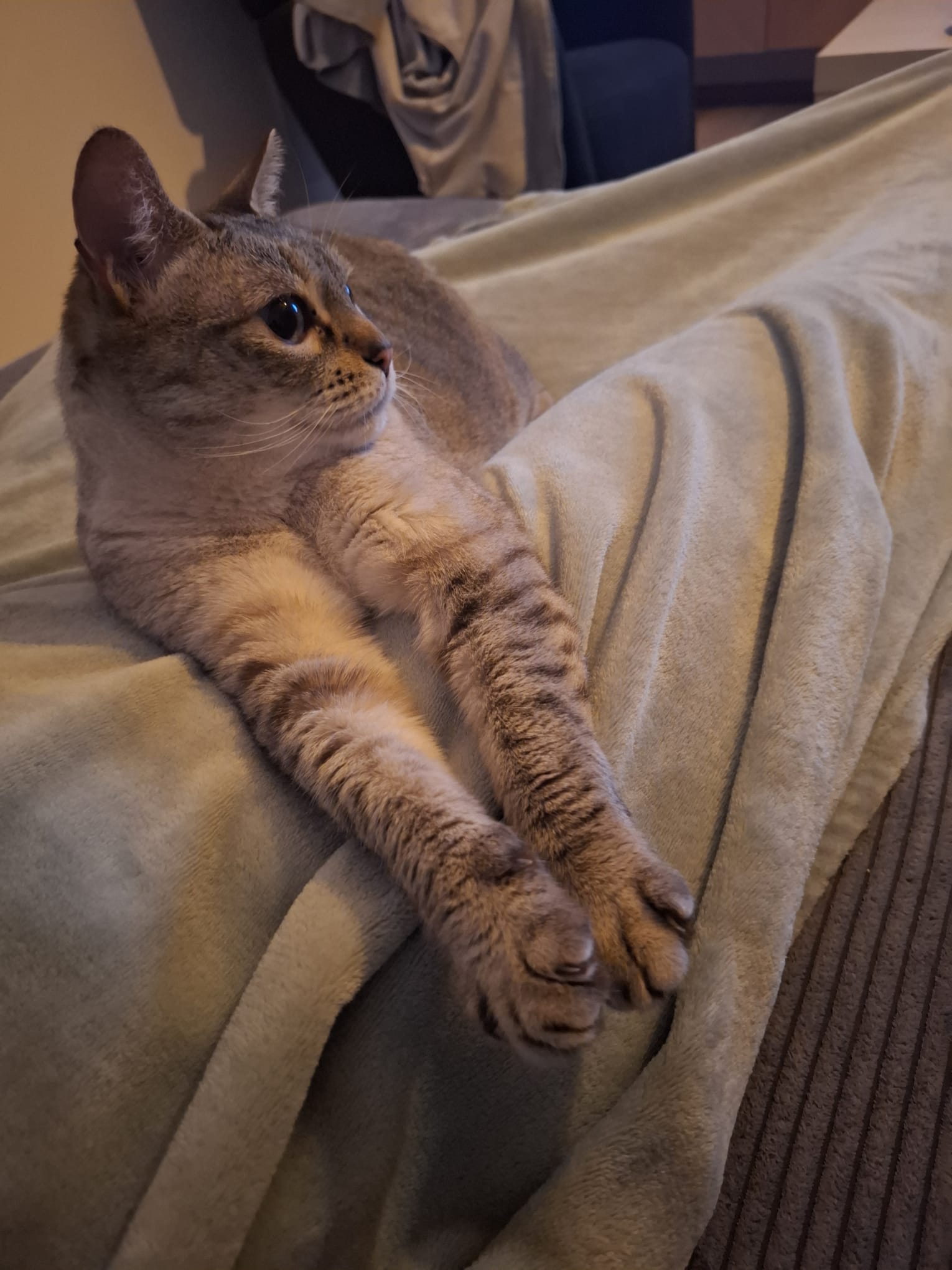 Cadi (geb. ca. 12/2024) ist eine menschenbezogene, zutrauliche Kätzin, die beim Menschen gern im Mittelpunkt steht.