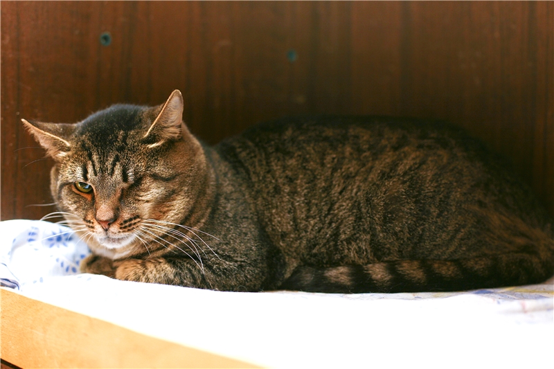 Kater Nilson, geb. ca.07/2013, getigert und einäugig, als Nilson zu mir kam, war sein Zustand sehr bedenklich auch sein Ernährungszustand war mehr als schlecht. Er stammt aus einer Tötungsstation. Er hatte Zahnstein konnte somit gar nicht richtig fressen, da jeder Bissen weh tat und sein zerstörtes Auge war noch in der Augenhöhle! Ich habe alles tierärztlich machen lassen und sein Auge richtig entfernen und schließen lassen, so können keine Keime mehr eindringen! Er hat sich SUPER erholt und sieht jetzt wieder richtig toll aus!