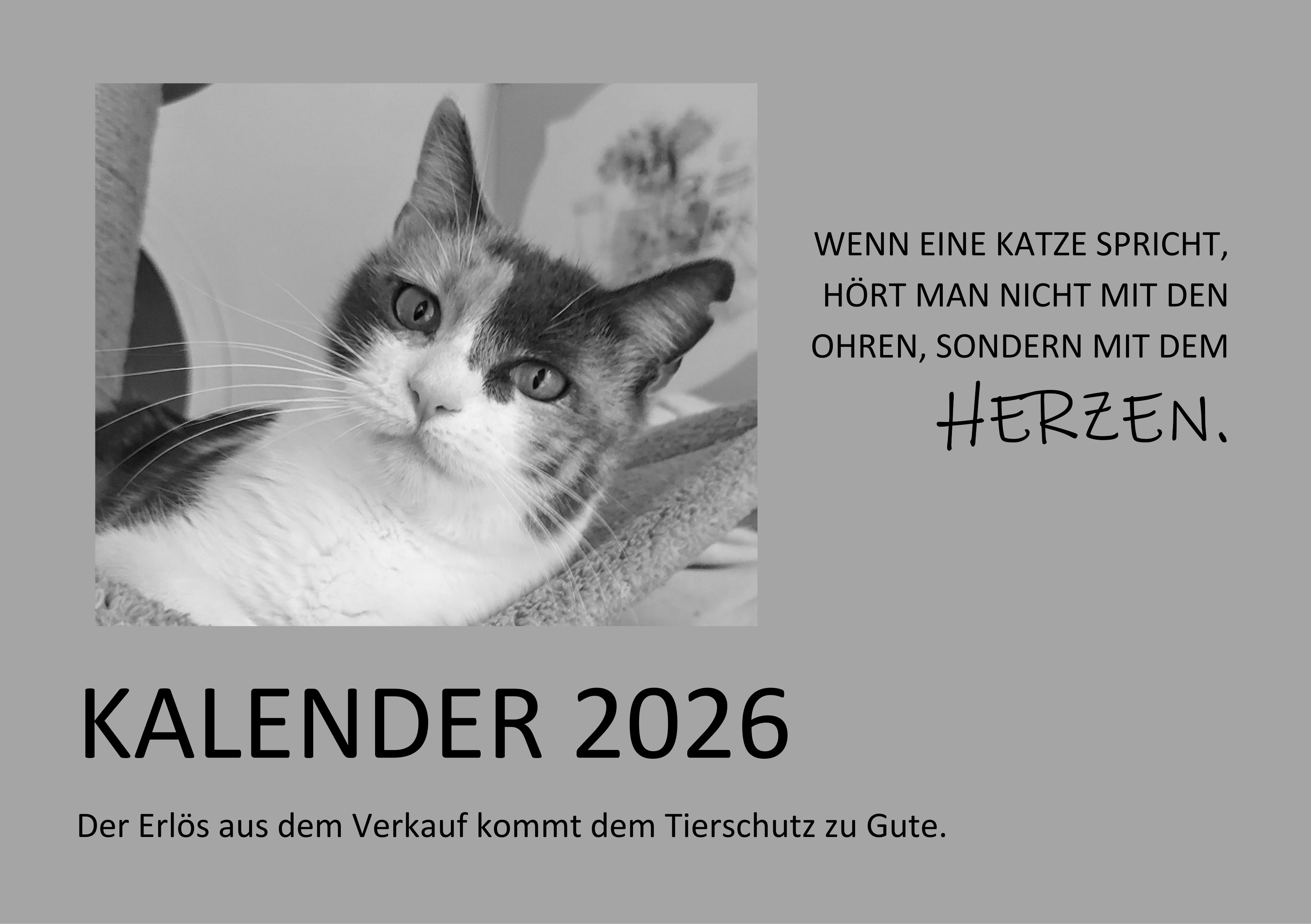 Wir freuen uns, Ihnen auch in diesem Jahr wieder unseren Katzenkalender anbieten zu können. Der Erlös aus dem Verkauf kommt dem Tierschutz zu Gute.