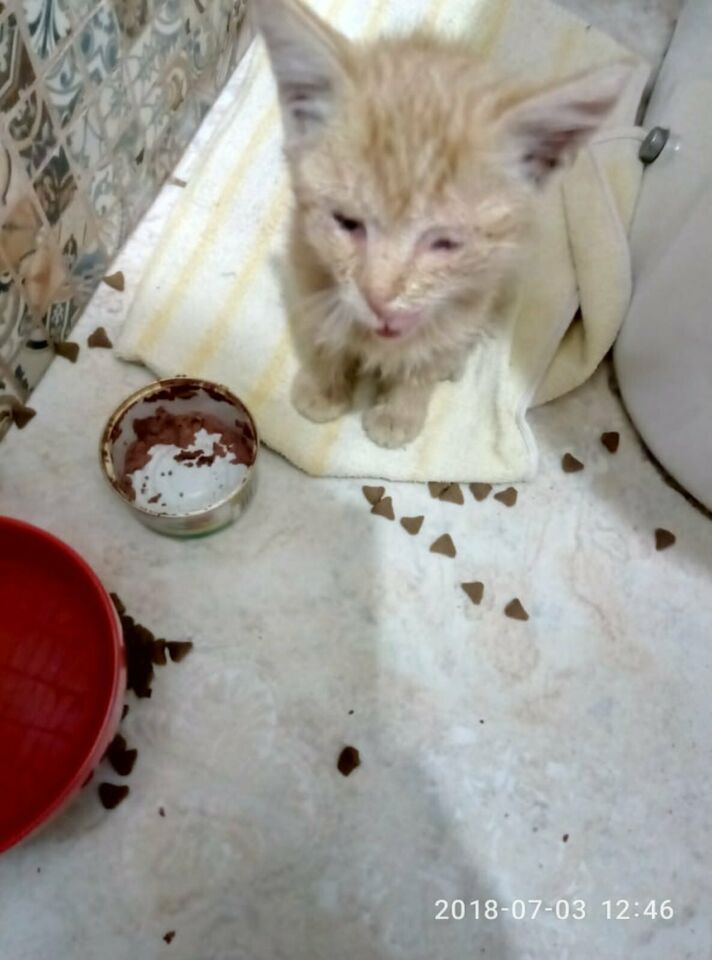 Frederik hatte Glück, dass er gefunden wurde. Eine ältere Frau fand ihn beim Gassigehen mit ihrem Hund. Der Hund hörte das leise wimmern. Unter einem Auto entdeckte sie dann ein kleines Häufchen Elend, das mit letzter Kraft noch ein paar Töne von sich gab. Frederik, war nur noch Haut und Knochen, beide Augen verklebt. Die Frau peppelte ihn mit viel Liebe auf.