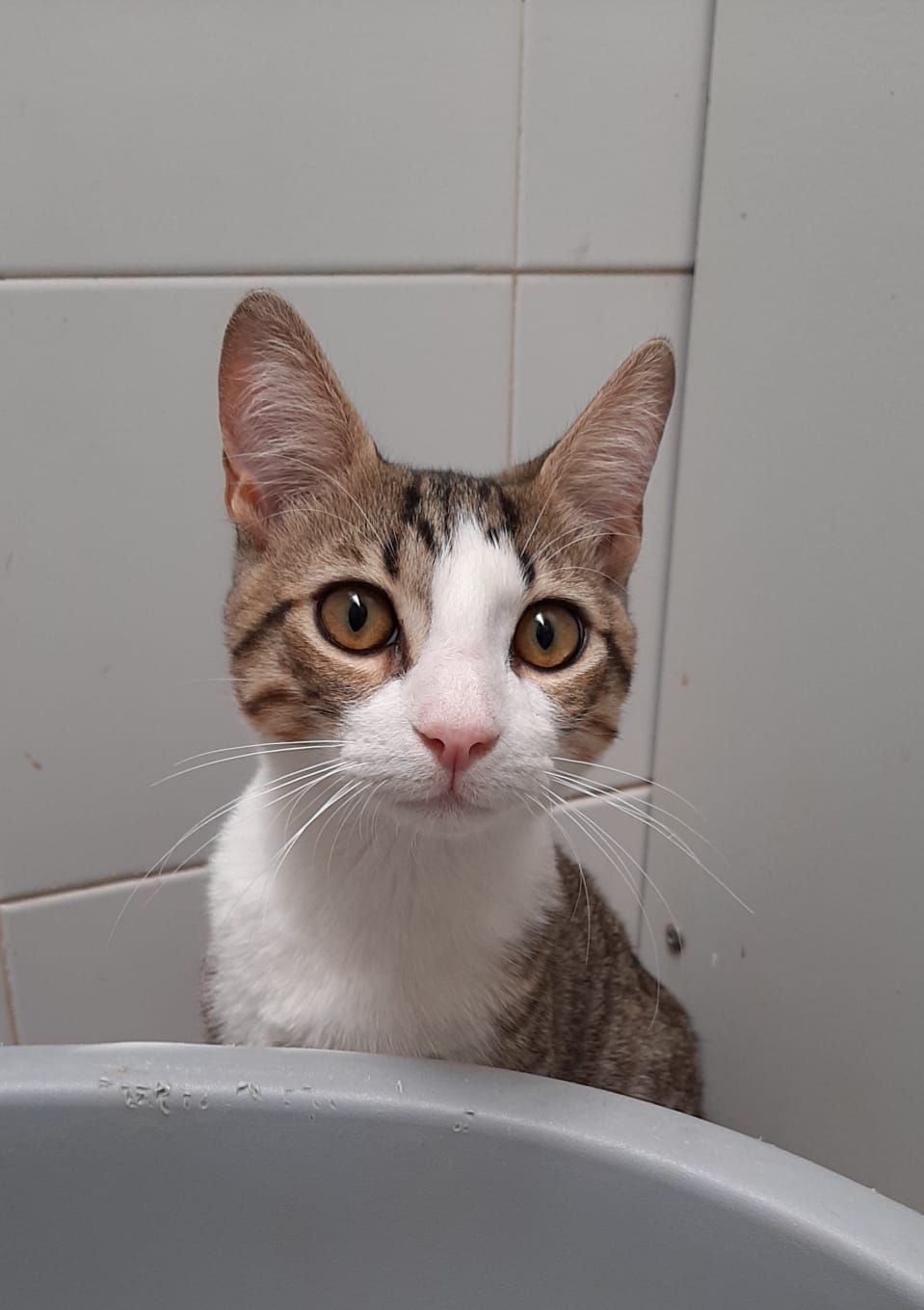 Katerchen Minu, geb. 02/2020, wurde verlassen in einem Gartengrundstück gefunden und ins Tierheim gebracht. Daher können wir nichts über seine Vergangenheit sagen. Minu hatte sicherlich einmal ein Zuhause, denn er ist sehr zutraulich. Er ist ein verträglicher, verspielter, temperamentvoller junger Kater und braucht auf jeden Fall andere Artgenossen in seinem neuen Zuhause.