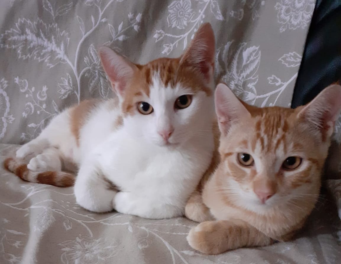 Die hübschen Brüder Max (rot) und Rocky (rot-weiß) wurden Ende Juni 2021 geboren. Ihre Mama Mimi wurde hochträchtig auf der Straße gefunden und auf eine Pflegestelle gebracht. Sie gebar 5 Babys. Inzwischen haben sich alle gut entwickelt und zwei der Kitten haben bereits ein Zuhause gefunden. Auch Mama Mimi und ihr Töchterchen Mila haben bereits Interessenten.