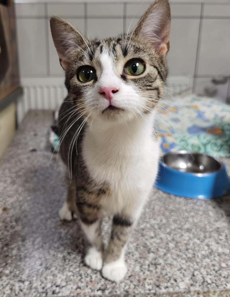 Als ich nur ein paar Wochen alt war, wurde ich auf der Straße gefunden und in eine Tierarztpraxis gebracht, wo ich liebevoll betreut wurde und zusammen mit anderen geretteten Katzen noch wohne. Ich war unterernährt, schwach und krank, aber die fürsorgliche Tierärztin hat sich toll um mich gekümmert. Dank ihrer Hilfe bin ich aufgeblüht und zu der fröhlichen, gesunden Kätzchen geworden, die ich heute bin.