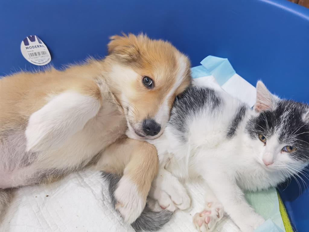 Ich bin ein sozialer Kater und lebe mit vielen geretteten Katzen zusammen. Ich spiele und kuschele gerne mit allen. Sogar mit den Hunden komme ich gut aus; hier in der Tierarztpraxis schlafe ich oft zusammen mit ihnen auf der Couch. Mein bester Freund ist Katerchen Scaritz, und es wäre einfach wundervoll, wenn wir zusammen eine Familie finden könnten, aber auch zu einer gleichaltrige freundliche Katze kann ich gerne kommen. Den ganzen Tag über gibt es so viel zu erleben und zu entdecken, schließlich haben junge, fröhliche Katerchen immer etwas zu tun!