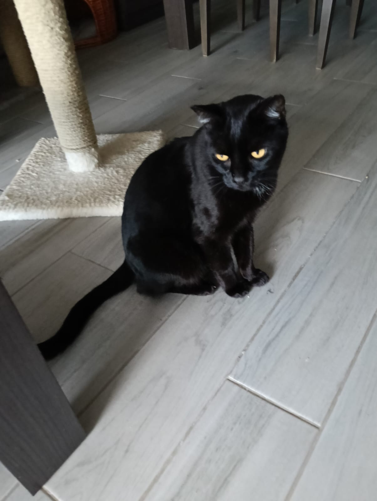 Seit 1 Woche ist nun sein Zimmer offen und er bewegt sich frei in der Wohnung, er sucht den Kontakt zu den Katzen, Konflikten mit ihnen geht er aus dem Weg.