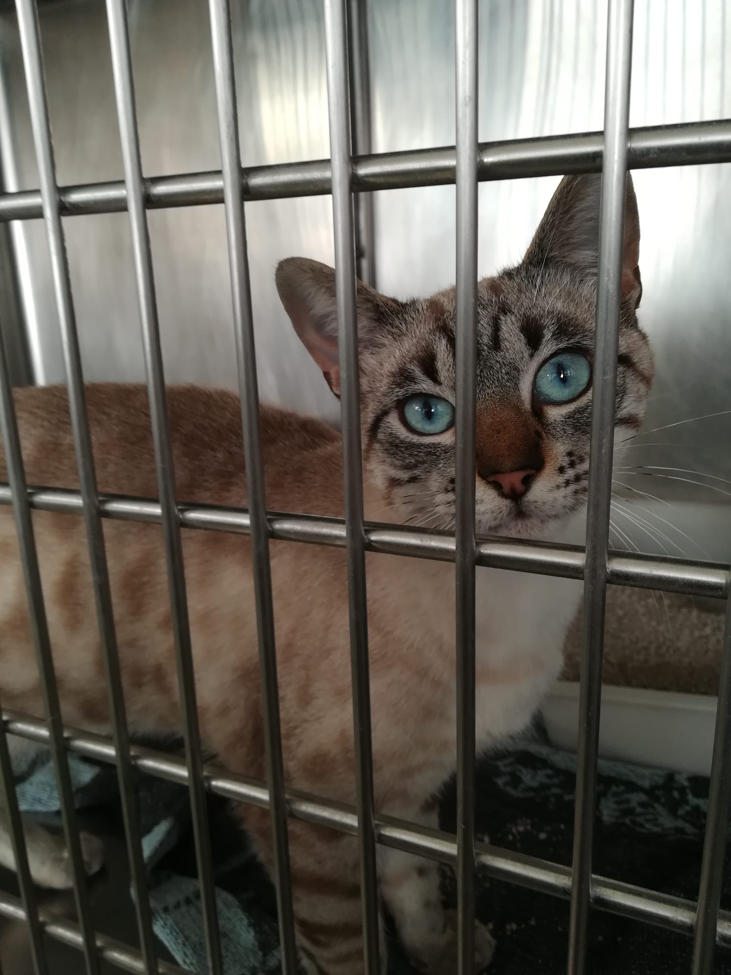 Die Brüder Kay und Monty, geb. ca. März 2019, sind Fundkater, die man an einer Futterstelle ausgesetzt hatte. Sie wurden ins Tierheim gebracht und saßen dort zunächst in einer Quarantänebox.