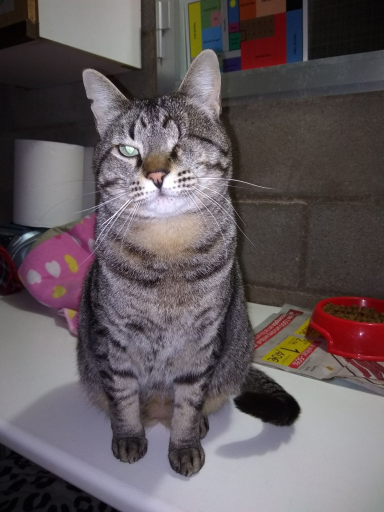 Pai, geb.ca. 03/2015, wurde ausgesetzt in einem Parkhaus gefunden. Er lebt nun im Tierheim. Er lebt dort ganz normal zusammen mit anderen Katzen in einem großen, für Katzen eingerichteten Gehege. Mit ihm ist dort auch ein kleiner, ruhiger Hund, und alle kommen gut mit einander aus.