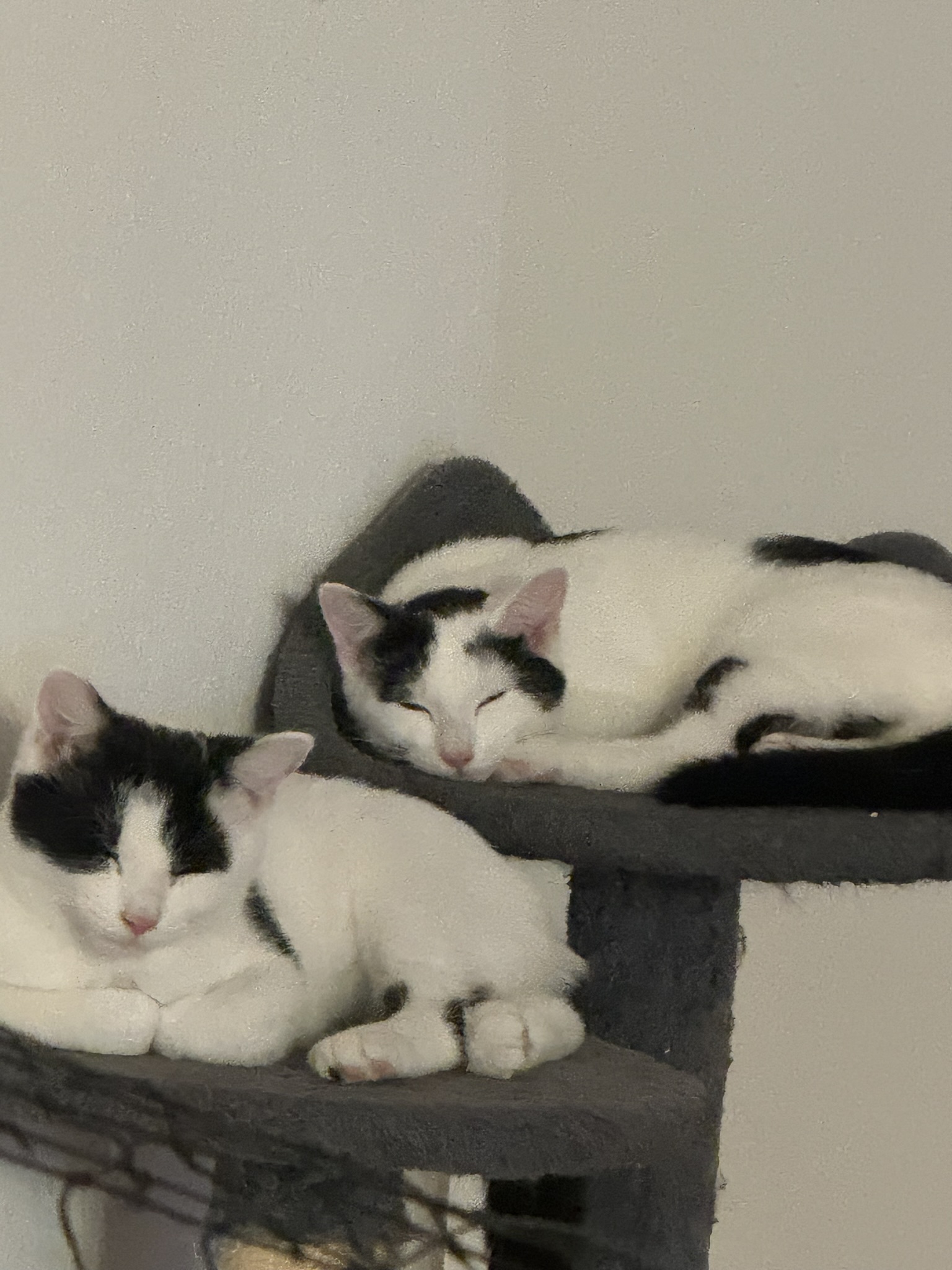 Die beiden sind vollkommen gesund und stubenrein. Sie wurden bisher nicht geimpft, da sie reine Hauskatzen sind, und sind aktuell noch nicht kastriert.
