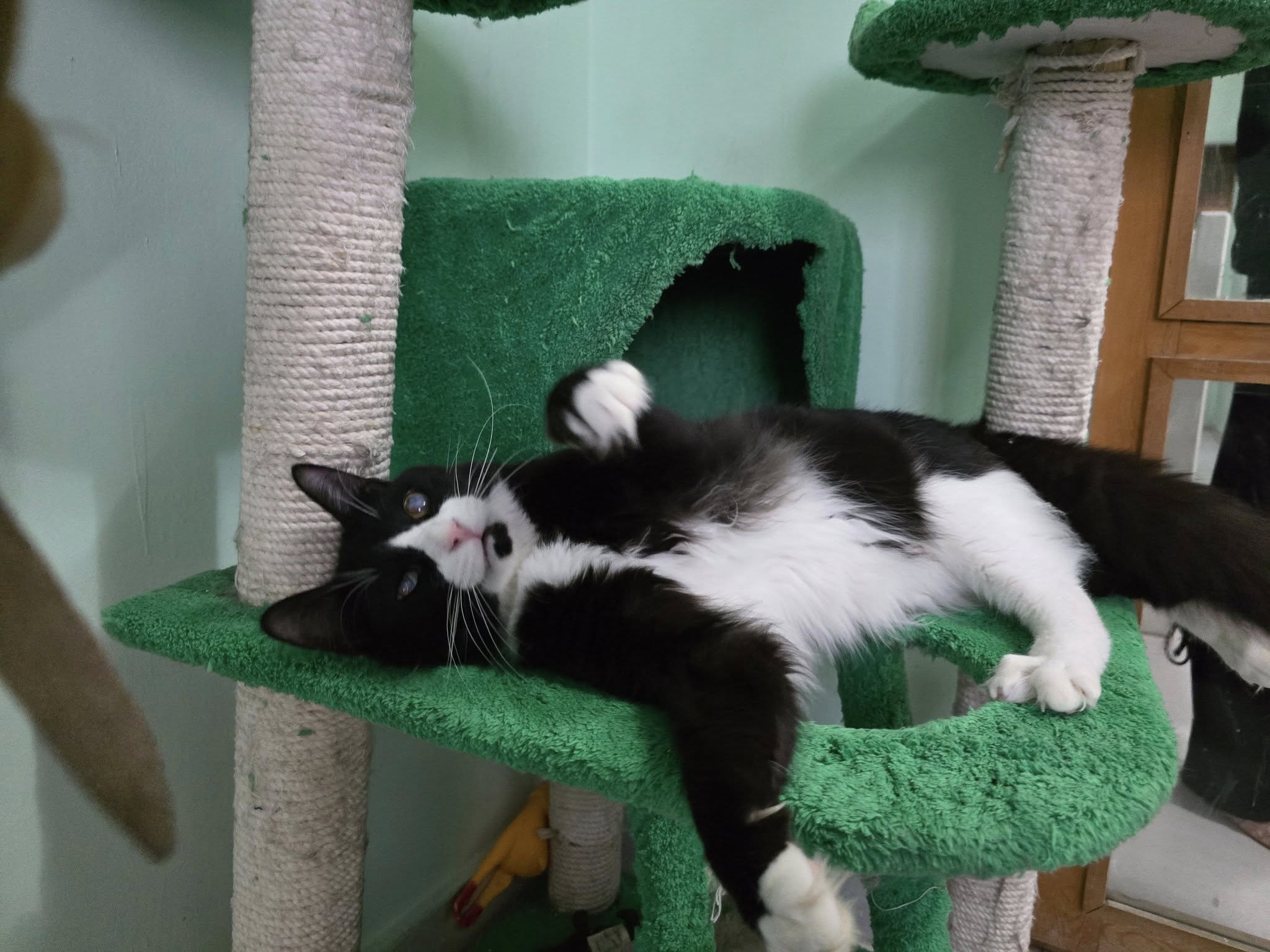 Schon nach wenigen Monaten zeigte sich eine erstaunliche Entwicklung: Er hat mittlerweile mittlere Sehfähigkeit, kann Schatten erkennen, und der weiße Schleier auf den Augen ist zurückgegangen. (Update: Plasma-Therapie im April 2024 abgeschlossen.) Nach 3 Monaten in der Klinik durfte er im Februar 2024 in das Meowgical Nights – Cairo’s Luxury Cat Hotel zu meiner lieben Freundin Anna Louise umziehen, wo er ein eigenes Zimmer mit Kratzbaum bewohnt.