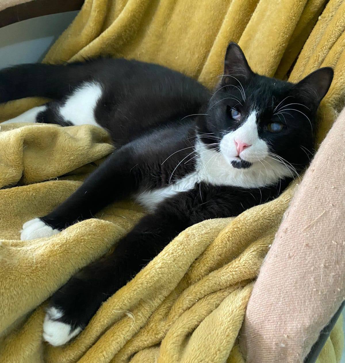 Schon nach wenigen Monaten zeigte sich eine erstaunliche Entwicklung: Er hat mittlerweile mittlere Sehfähigkeit, kann Schatten erkennen, und der weiße Schleier auf den Augen ist zurückgegangen. (Update: Plasma-Therapie im April 2024 abgeschlossen.) Nach 3 Monaten in der Klinik durfte er im Februar 2024 in das Meowgical Nights – Cairo’s Luxury Cat Hotel zu meiner lieben Freundin Anna Louise umziehen, wo er ein eigenes Zimmer mit Kratzbaum bewohnt.