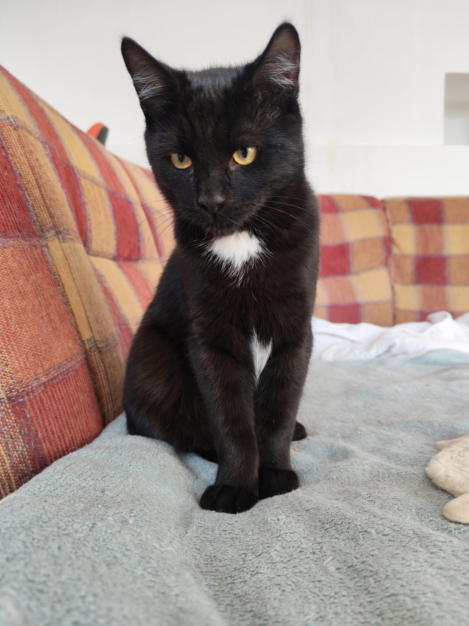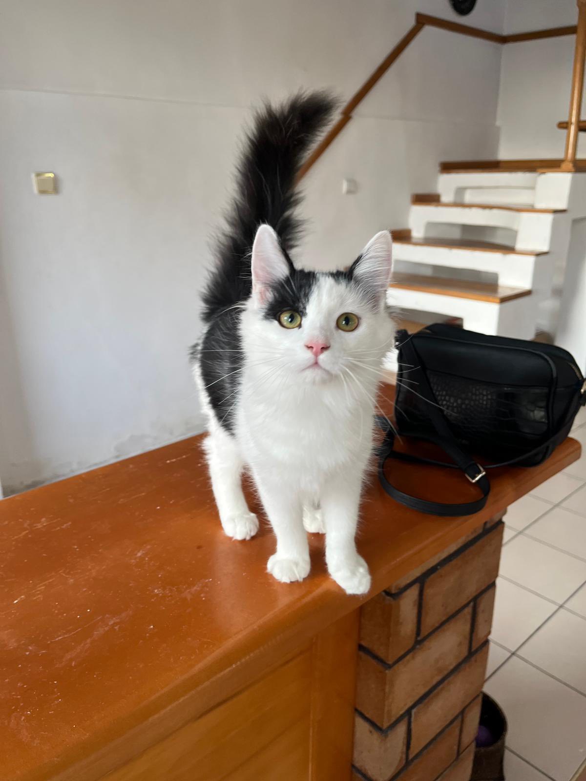 Er ist so wunderschön. Sein längeres Fell, der sanfte Blick, die Art, wie er schmust, einfach unwiderstehlich. Er ist sehr ruhig und könnte ewig schmusen. Er sucht die Nähe seiner Geschwister und ist ein sehr sozialer Kater.