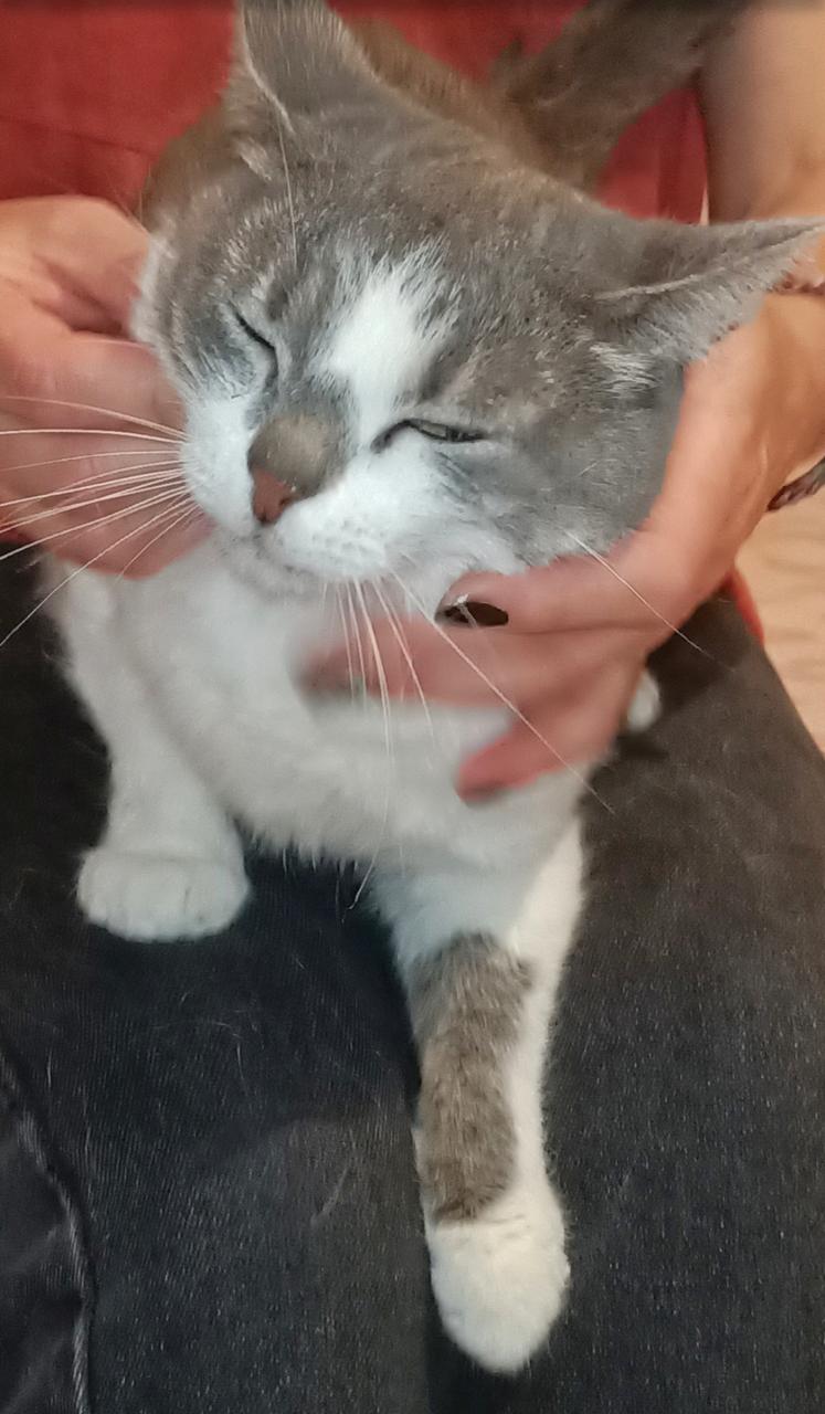 Sandra spürte wohl die Bedrohung, denn sie kam mit ihren Babys immer wieder auf eine tierliebe Frau zu, schaute ihr in die Augen und begleitete sie auf ihren Spaziergängen über das Gelände. Als die nette Frau die zierliche Katzenmama hochnahm, setzte sie sich auf ihren Schoß und schnurrte. Die Frau konnte die kleine Katzenfamilie nicht mitnehmen und brachte die Katzen in ein Tierheim.