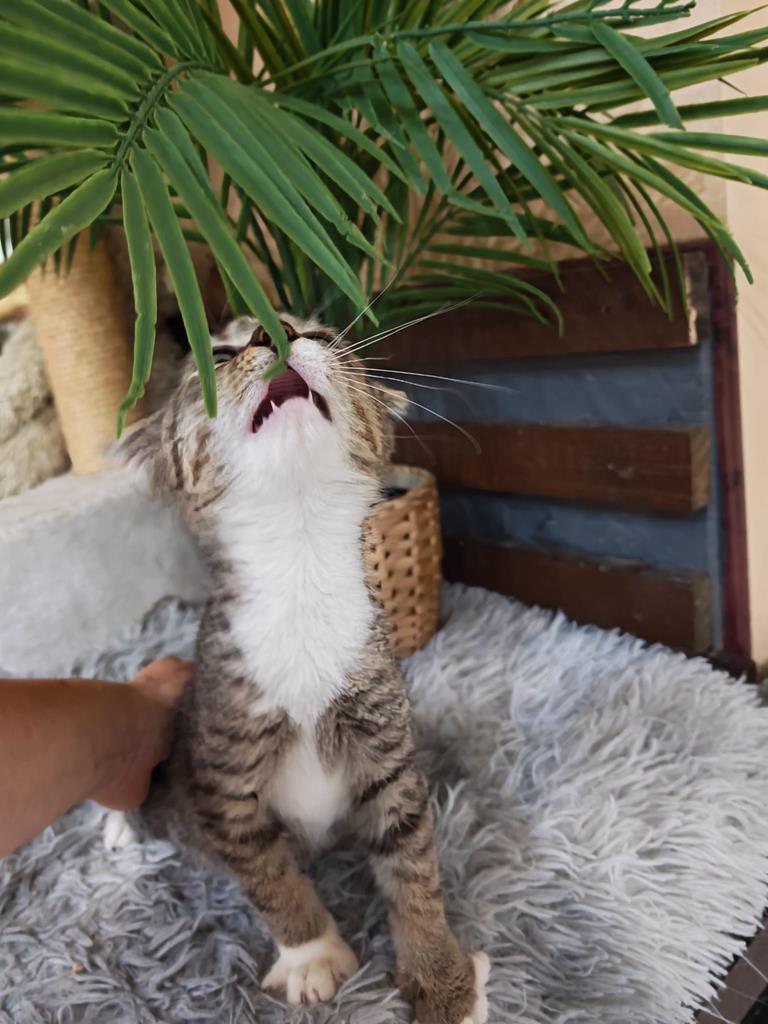 Ich bin sehr anhänglich und verspielt, neugierig und voller Lebensfreude. Gerne spiele ich mit meinen Katzenfreunden, und auch Hunde bin ich gewöhnt. Die Tierärztin sagt, ich sei zuckersüß, voller Energie und äußerst sozial.