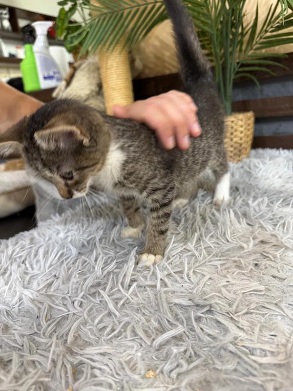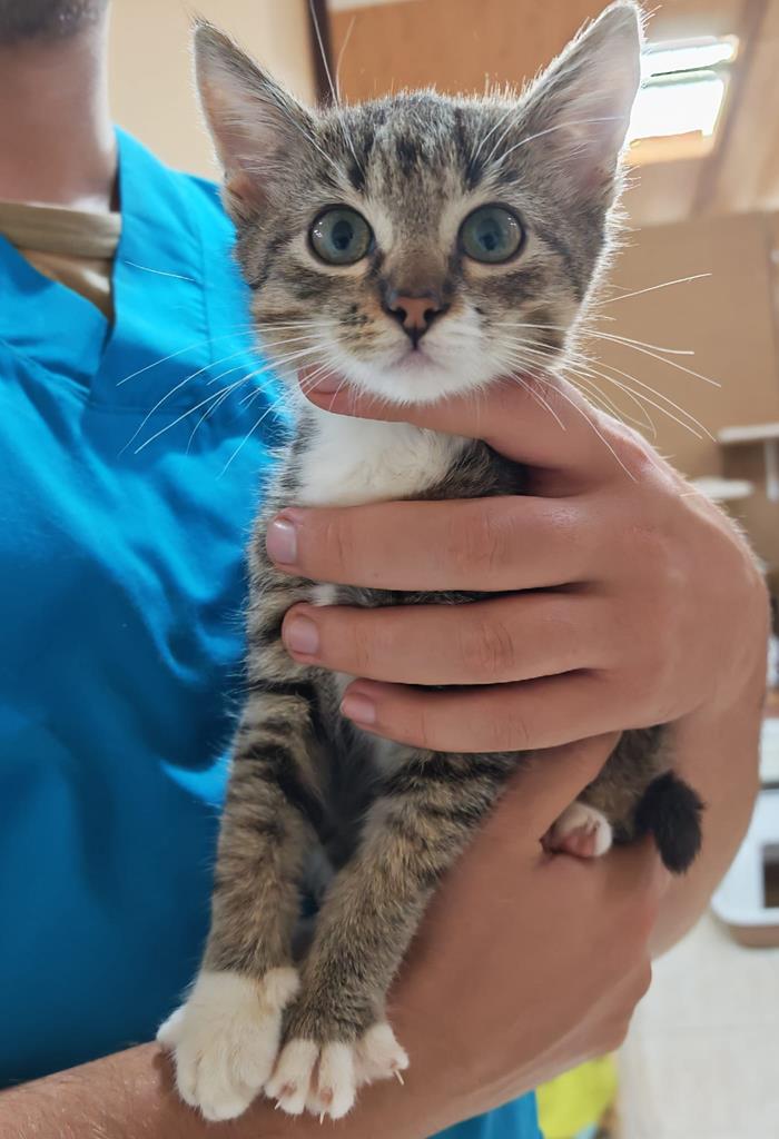 Zusammen mit meinem Freund Peterle wurde ich auf der Straße gefunden um zum Tierarzt gebracht. Da wir sonst niemanden hatten, sind wir dort in der Praxis geblieben und wurden per Flasche großgezogen.
